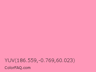 YUV 186.559,-0.769,60.023 Color is a light rose color and the nearest color is Schauss Pink #ff91af. Hex code #ff98b9 and RGB value is rgb(255,152,185). In RGB color space, this color is composed of 100% red, 60% green, 73% blue, In CMYK color space, this color is composed of 0% cyan, 40% magenta, 27% yellow , 0% black , In HSL color space, this color has a hue angle of 341° , 100% saturation and 80% lightness.