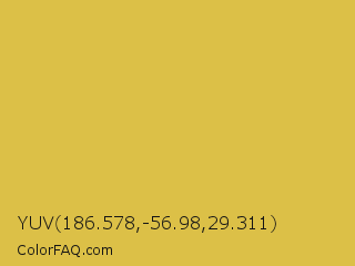 YUV 186.578,-56.98,29.311 Color is a normal yellow color and the nearest color is Anzac #e0b646. Hex code #dcc047 and RGB value is rgb(220,192,71). In RGB color space, this color is composed of 86% red, 75% green, 28% blue, In CMYK color space, this color is composed of 0% cyan, 13% magenta, 68% yellow , 14% black , In HSL color space, this color has a hue angle of 49° , 68% saturation and 57% lightness.