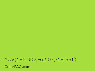 YUV 186.902,-62.07,-18.331 Color is a normal green color and the nearest color is Conifer #acdd4d. Hex code #a6de3d and RGB value is rgb(166,222,61). In RGB color space, this color is composed of 65% red, 87% green, 24% blue, In CMYK color space, this color is composed of 25% cyan, 0% magenta, 73% yellow , 13% black , In HSL color space, this color has a hue angle of 81° , 71% saturation and 55% lightness.