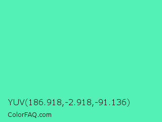 YUV 186.918,-2.918,-91.136 Color is a light green color and the nearest color is Medium Aquamarine #66ddaa. Hex code #53f1b5 and RGB value is rgb(83,241,181). In RGB color space, this color is composed of 33% red, 95% green, 71% blue, In CMYK color space, this color is composed of 66% cyan, 0% magenta, 25% yellow , 5% black , In HSL color space, this color has a hue angle of 157° , 85% saturation and 64% lightness.
