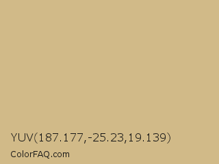 YUV 187.177,-25.23,19.139 Color is a light orange color and the nearest color is Tan #d2b48c. Hex code #d1ba88 and RGB value is rgb(209,186,136). In RGB color space, this color is composed of 82% red, 73% green, 53% blue, In CMYK color space, this color is composed of 0% cyan, 11% magenta, 35% yellow , 18% black , In HSL color space, this color has a hue angle of 41° , 44% saturation and 68% lightness.