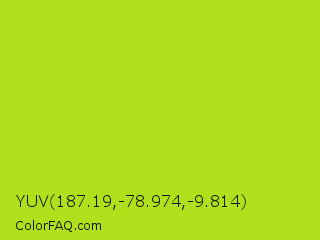 YUV 187.19,-78.974,-9.814 Color is a normal lime color and the nearest color is Inch Worm #b0e313. Hex code #b0e01b and RGB value is rgb(176,224,27). In RGB color space, this color is composed of 69% red, 88% green, 11% blue, In CMYK color space, this color is composed of 21% cyan, 0% magenta, 88% yellow , 12% black , In HSL color space, this color has a hue angle of 75° , 78% saturation and 49% lightness.