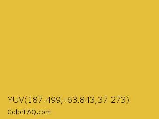 YUV 187.499,-63.843,37.273 Color is a normal yellow color and the nearest color is Meat Brown #e5b73b. Hex code #e6bf3a and RGB value is rgb(230,191,58). In RGB color space, this color is composed of 90% red, 75% green, 23% blue, In CMYK color space, this color is composed of 0% cyan, 17% magenta, 75% yellow , 10% black , In HSL color space, this color has a hue angle of 46° , 77% saturation and 56% lightness.