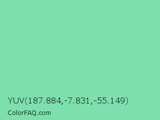 YUV 187.884,-7.831,-55.149 Color is a light green color and the nearest color is Vista Blue #8fd6b4. Hex code #7ddfac and RGB value is rgb(125,223,172). In RGB color space, this color is composed of 49% red, 87% green, 67% blue, In CMYK color space, this color is composed of 44% cyan, 0% magenta, 23% yellow , 13% black , In HSL color space, this color has a hue angle of 149° , 60% saturation and 68% lightness.