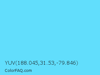 YUV 188.045,31.53,-79.846 Color is a light cyan color and the nearest color is Turquoise Blue #6cdae7. Hex code #61defc and RGB value is rgb(97,222,252). In RGB color space, this color is composed of 38% red, 87% green, 99% blue, In CMYK color space, this color is composed of 62% cyan, 12% magenta, 0% yellow , 1% black , In HSL color space, this color has a hue angle of 192° , 96% saturation and 68% lightness.