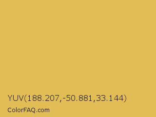 YUV 188.207,-50.881,33.144 Color is a light orange color and the nearest color is Ronchi #ecc54e. Hex code #e2bd55 and RGB value is rgb(226,189,85). In RGB color space, this color is composed of 89% red, 74% green, 33% blue, In CMYK color space, this color is composed of 0% cyan, 16% magenta, 62% yellow , 11% black , In HSL color space, this color has a hue angle of 44° , 71% saturation and 61% lightness.