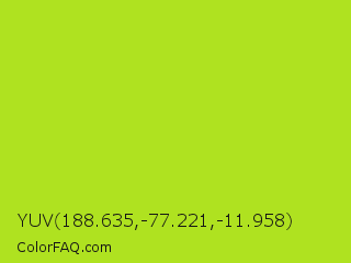YUV 188.635,-77.221,-11.958 Color is a normal lime color and the nearest color is Inch Worm #b0e313. Hex code #afe220 and RGB value is rgb(175,226,32). In RGB color space, this color is composed of 69% red, 89% green, 13% blue, In CMYK color space, this color is composed of 23% cyan, 0% magenta, 86% yellow , 11% black , In HSL color space, this color has a hue angle of 76° , 77% saturation and 51% lightness.