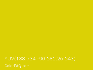 YUV 188.734,-90.581,26.543 Color is a normal yellow color and the nearest color is Citrine #e4d00a. Hex code #dbd105 and RGB value is rgb(219,209,5). In RGB color space, this color is composed of 86% red, 82% green, 2% blue, In CMYK color space, this color is composed of 0% cyan, 5% magenta, 98% yellow , 14% black , In HSL color space, this color has a hue angle of 57° , 96% saturation and 44% lightness.