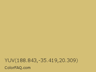 YUV 188.843,-35.419,20.309 Color is a light yellow color and the nearest color is Apache #dfbe6f. Hex code #d4bf75 and RGB value is rgb(212,191,117). In RGB color space, this color is composed of 83% red, 75% green, 46% blue, In CMYK color space, this color is composed of 0% cyan, 10% magenta, 45% yellow , 17% black , In HSL color space, this color has a hue angle of 47° , 52% saturation and 65% lightness.