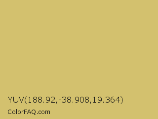 YUV 188.92,-38.908,19.364 Color is a light yellow color and the nearest color is Apache #dfbe6f. Hex code #d3c16e and RGB value is rgb(211,193,110). In RGB color space, this color is composed of 83% red, 76% green, 43% blue, In CMYK color space, this color is composed of 0% cyan, 9% magenta, 48% yellow , 17% black , In HSL color space, this color has a hue angle of 49° , 53% saturation and 63% lightness.