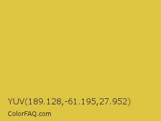YUV 189.128,-61.195,27.952 Color is a normal yellow color and the nearest color is Anzac #e0b646. Hex code #ddc541 and RGB value is rgb(221,197,65). In RGB color space, this color is composed of 87% red, 77% green, 25% blue, In CMYK color space, this color is composed of 0% cyan, 11% magenta, 71% yellow , 13% black , In HSL color space, this color has a hue angle of 51° , 70% saturation and 56% lightness.