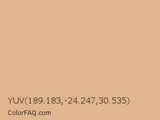 YUV 189.183,-24.247,30.535 Color is a light orange color and the nearest color is Burlywood #deb887. Hex code #e0b58c and RGB value is rgb(224,181,140). In RGB color space, this color is composed of 88% red, 71% green, 55% blue, In CMYK color space, this color is composed of 0% cyan, 19% magenta, 38% yellow , 12% black , In HSL color space, this color has a hue angle of 29° , 58% saturation and 71% lightness.