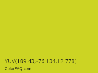 YUV 189.43,-76.134,12.778 Color is a normal yellow color and the nearest color is Bird Flower #d4cd16. Hex code #ccd423 and RGB value is rgb(204,212,35). In RGB color space, this color is composed of 80% red, 83% green, 14% blue, In CMYK color space, this color is composed of 4% cyan, 0% magenta, 83% yellow , 17% black , In HSL color space, this color has a hue angle of 63° , 72% saturation and 48% lightness.