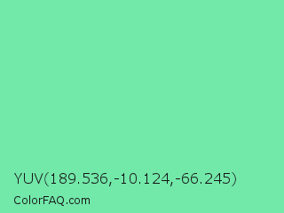 YUV 189.536,-10.124,-66.245 Color is a light green color and the nearest color is Medium Aquamarine #66ddaa. Hex code #72e8a9 and RGB value is rgb(114,232,169). In RGB color space, this color is composed of 45% red, 91% green, 66% blue, In CMYK color space, this color is composed of 51% cyan, 0% magenta, 27% yellow , 9% black , In HSL color space, this color has a hue angle of 148° , 72% saturation and 68% lightness.