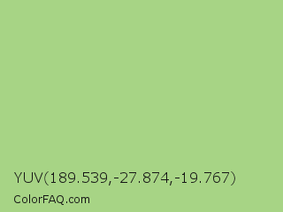 YUV 189.539,-27.874,-19.767 Color is a light green color and the nearest color is Feijoa #9fdd8c. Hex code #a7d485 and RGB value is rgb(167,212,133). In RGB color space, this color is composed of 65% red, 83% green, 52% blue, In CMYK color space, this color is composed of 21% cyan, 0% magenta, 37% yellow , 17% black , In HSL color space, this color has a hue angle of 94° , 48% saturation and 68% lightness.
