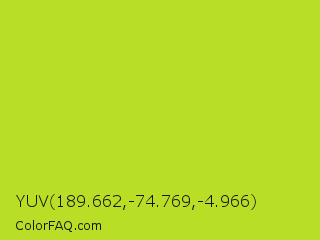 YUV 189.662,-74.769,-4.966 Color is a normal lime color and the nearest color is Inch Worm #b0e313. Hex code #b8de26 and RGB value is rgb(184,222,38). In RGB color space, this color is composed of 72% red, 87% green, 15% blue, In CMYK color space, this color is composed of 17% cyan, 0% magenta, 83% yellow , 13% black , In HSL color space, this color has a hue angle of 72° , 74% saturation and 51% lightness.