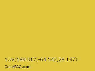 YUV 189.917,-64.542,28.137 Color is a normal yellow color and the nearest color is Meat Brown #e5b73b. Hex code #dec73b and RGB value is rgb(222,199,59). In RGB color space, this color is composed of 87% red, 78% green, 23% blue, In CMYK color space, this color is composed of 0% cyan, 10% magenta, 73% yellow , 13% black , In HSL color space, this color has a hue angle of 52° , 71% saturation and 55% lightness.
