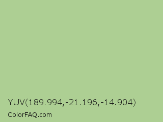 YUV 189.994,-21.196,-14.904 Color is a light green color and the nearest color is Feijoa #9fdd8c. Hex code #adcf93 and RGB value is rgb(173,207,147). In RGB color space, this color is composed of 68% red, 81% green, 58% blue, In CMYK color space, this color is composed of 16% cyan, 0% magenta, 29% yellow , 19% black , In HSL color space, this color has a hue angle of 94° , 38% saturation and 69% lightness.