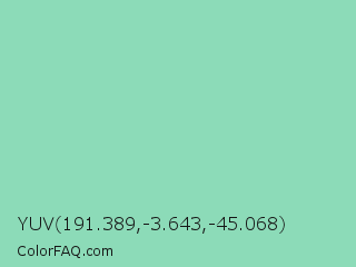 YUV 191.389,-3.643,-45.068 Color is a light green color and the nearest color is Vista Blue #8fd6b4. Hex code #8cdbb8 and RGB value is rgb(140,219,184). In RGB color space, this color is composed of 55% red, 86% green, 72% blue, In CMYK color space, this color is composed of 36% cyan, 0% magenta, 16% yellow , 14% black , In HSL color space, this color has a hue angle of 153° , 52% saturation and 70% lightness.