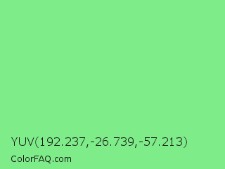 YUV 192.237,-26.739,-57.213 Color is a light green color and the nearest color is Light Green #90ee90. Hex code #7fec8a and RGB value is rgb(127,236,138). In RGB color space, this color is composed of 50% red, 93% green, 54% blue, In CMYK color space, this color is composed of 46% cyan, 0% magenta, 42% yellow , 7% black , In HSL color space, this color has a hue angle of 126° , 74% saturation and 71% lightness.