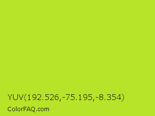 YUV 192.526,-75.195,-8.354 Color is a normal lime color and the nearest color is Inch Worm #b0e313. Hex code #b7e328 and RGB value is rgb(183,227,40). In RGB color space, this color is composed of 72% red, 89% green, 16% blue, In CMYK color space, this color is composed of 19% cyan, 0% magenta, 82% yellow , 11% black , In HSL color space, this color has a hue angle of 74° , 77% saturation and 52% lightness.
