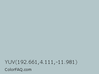 YUV 192.661,4.111,-11.981 Color is a light cyan color and the nearest color is Submarine #bac7c9. Hex code #b3c6c9 and RGB value is rgb(179,198,201). In RGB color space, this color is composed of 70% red, 78% green, 79% blue, In CMYK color space, this color is composed of 11% cyan, 1% magenta, 0% yellow , 21% black , In HSL color space, this color has a hue angle of 188° , 17% saturation and 75% lightness.