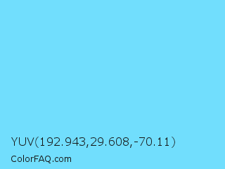 YUV 192.943,29.608,-70.11 Color is a light cyan color and the nearest color is Spray #79deec. Hex code #71defd and RGB value is rgb(113,222,253). In RGB color space, this color is composed of 44% red, 87% green, 99% blue, In CMYK color space, this color is composed of 55% cyan, 12% magenta, 0% yellow , 1% black , In HSL color space, this color has a hue angle of 193° , 97% saturation and 72% lightness.