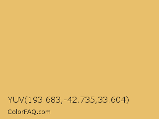 YUV 193.683,-42.735,33.604 Color is a light orange color and the nearest color is Apache #dfbe6f. Hex code #e8bf6b and RGB value is rgb(232,191,107). In RGB color space, this color is composed of 91% red, 75% green, 42% blue, In CMYK color space, this color is composed of 0% cyan, 18% magenta, 54% yellow , 9% black , In HSL color space, this color has a hue angle of 40° , 73% saturation and 66% lightness.