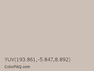YUV 193.861,-5.847,8.892 Color is a light orange color and the nearest color is Silver Rust #c9c0bb. Hex code #ccbfb6 and RGB value is rgb(204,191,182). In RGB color space, this color is composed of 80% red, 75% green, 71% blue, In CMYK color space, this color is composed of 0% cyan, 6% magenta, 11% yellow , 20% black , In HSL color space, this color has a hue angle of 25° , 18% saturation and 76% lightness.