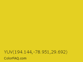 YUV 194.144,-78.951,29.692 Color is a normal yellow color and the nearest color is Sunflower #e4d422. Hex code #e4d022 and RGB value is rgb(228,208,34). In RGB color space, this color is composed of 89% red, 82% green, 13% blue, In CMYK color space, this color is composed of 0% cyan, 9% magenta, 85% yellow , 11% black , In HSL color space, this color has a hue angle of 54° , 78% saturation and 51% lightness.
