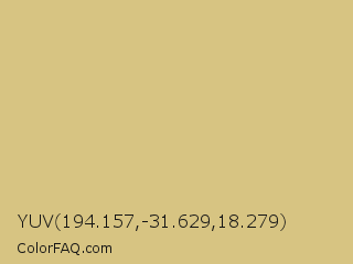 YUV 194.157,-31.629,18.279 Color is a light yellow color and the nearest color is Straw #d4bf8d. Hex code #d7c482 and RGB value is rgb(215,196,130). In RGB color space, this color is composed of 84% red, 77% green, 51% blue, In CMYK color space, this color is composed of 0% cyan, 9% magenta, 40% yellow , 16% black , In HSL color space, this color has a hue angle of 47° , 52% saturation and 68% lightness.