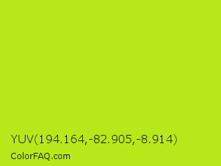 YUV 194.164,-82.905,-8.914 Color is a normal lime color and the nearest color is Inch Worm #b0e313. Hex code #b8e81a and RGB value is rgb(184,232,26). In RGB color space, this color is composed of 72% red, 91% green, 10% blue, In CMYK color space, this color is composed of 21% cyan, 0% magenta, 89% yellow , 9% black , In HSL color space, this color has a hue angle of 74° , 82% saturation and 51% lightness.