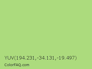 YUV 194.231,-34.131,-19.497 Color is a light green color and the nearest color is Feijoa #9fdd8c. Hex code #acdb7d and RGB value is rgb(172,219,125). In RGB color space, this color is composed of 67% red, 86% green, 49% blue, In CMYK color space, this color is composed of 21% cyan, 0% magenta, 43% yellow , 14% black , In HSL color space, this color has a hue angle of 90° , 57% saturation and 67% lightness.
