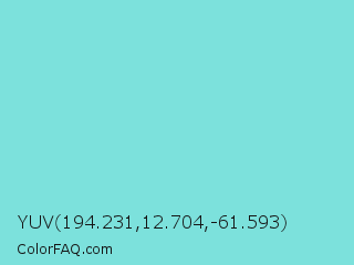 YUV 194.231,12.704,-61.593 Color is a light cyan color and the nearest color is Aquamarine Blue #71d9e2. Hex code #7ce1dc and RGB value is rgb(124,225,220). In RGB color space, this color is composed of 49% red, 88% green, 86% blue, In CMYK color space, this color is composed of 45% cyan, 0% magenta, 2% yellow , 12% black , In HSL color space, this color has a hue angle of 177° , 63% saturation and 68% lightness.
