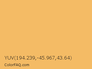 YUV 194.239,-45.967,43.64 Color is a light orange color and the nearest color is Rajah #f7b668. Hex code #f4bb65 and RGB value is rgb(244,187,101). In RGB color space, this color is composed of 96% red, 73% green, 40% blue, In CMYK color space, this color is composed of 0% cyan, 23% magenta, 59% yellow , 4% black , In HSL color space, this color has a hue angle of 36° , 87% saturation and 68% lightness.