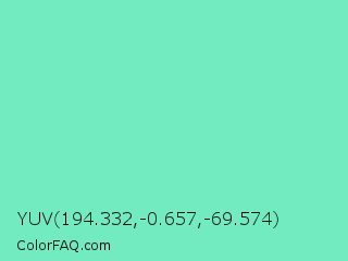 YUV 194.332,-0.657,-69.574 Color is a light green color and the nearest color is Bermuda #7dd8c6. Hex code #73ebc1 and RGB value is rgb(115,235,193). In RGB color space, this color is composed of 45% red, 92% green, 76% blue, In CMYK color space, this color is composed of 51% cyan, 0% magenta, 18% yellow , 8% black , In HSL color space, this color has a hue angle of 159° , 75% saturation and 69% lightness.