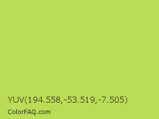 YUV 194.558,-53.519,-7.505 Color is a normal lime color and the nearest color is June Bud #bdda57. Hex code #badc56 and RGB value is rgb(186,220,86). In RGB color space, this color is composed of 73% red, 86% green, 34% blue, In CMYK color space, this color is composed of 15% cyan, 0% magenta, 61% yellow , 14% black , In HSL color space, this color has a hue angle of 75° , 66% saturation and 60% lightness.