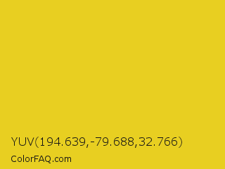 YUV 194.639,-79.688,32.766 Color is a normal yellow color and the nearest color is Sunflower #e4d422. Hex code #e8cf21 and RGB value is rgb(232,207,33). In RGB color space, this color is composed of 91% red, 81% green, 13% blue, In CMYK color space, this color is composed of 0% cyan, 11% magenta, 86% yellow , 9% black , In HSL color space, this color has a hue angle of 52° , 81% saturation and 52% lightness.
