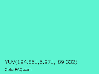 YUV 194.861,6.971,-89.332 Color is a light cyan color and the nearest color is Turquoise #40e0d0. Hex code #5df4d1 and RGB value is rgb(93,244,209). In RGB color space, this color is composed of 36% red, 96% green, 82% blue, In CMYK color space, this color is composed of 62% cyan, 0% magenta, 14% yellow , 4% black , In HSL color space, this color has a hue angle of 166° , 87% saturation and 66% lightness.