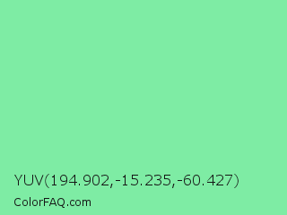 YUV 194.902,-15.235,-60.427 Color is a light green color and the nearest color is Light Green #90ee90. Hex code #7eeca4 and RGB value is rgb(126,236,164). In RGB color space, this color is composed of 49% red, 93% green, 64% blue, In CMYK color space, this color is composed of 47% cyan, 0% magenta, 31% yellow , 7% black , In HSL color space, this color has a hue angle of 141° , 74% saturation and 71% lightness.