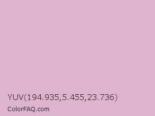YUV 194.935,5.455,23.736 Color is a light magenta color and the nearest color is Pink Lavender #d8b2d1. Hex code #deb3ce and RGB value is rgb(222,179,206). In RGB color space, this color is composed of 87% red, 70% green, 81% blue, In CMYK color space, this color is composed of 0% cyan, 19% magenta, 7% yellow , 13% black , In HSL color space, this color has a hue angle of 322° , 39% saturation and 79% lightness.