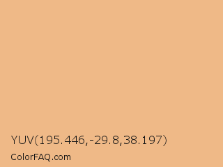 YUV 195.446,-29.8,38.197 Color is a light orange color and the nearest color is Tacao #edb381. Hex code #efb987 and RGB value is rgb(239,185,135). In RGB color space, this color is composed of 94% red, 73% green, 53% blue, In CMYK color space, this color is composed of 0% cyan, 23% magenta, 44% yellow , 6% black , In HSL color space, this color has a hue angle of 29° , 76% saturation and 73% lightness.