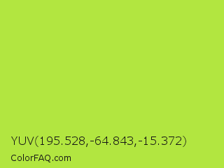 YUV 195.528,-64.843,-15.372 Color is a normal lime color and the nearest color is Conifer #acdd4d. Hex code #b2e640 and RGB value is rgb(178,230,64). In RGB color space, this color is composed of 70% red, 90% green, 25% blue, In CMYK color space, this color is composed of 23% cyan, 0% magenta, 72% yellow , 10% black , In HSL color space, this color has a hue angle of 79° , 77% saturation and 58% lightness.