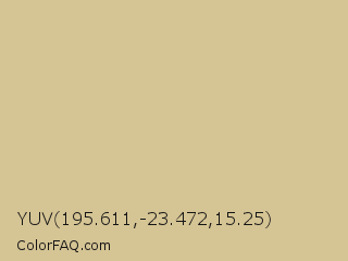 YUV 195.611,-23.472,15.25 Color is a light orange color and the nearest color is Pavlova #d7c498. Hex code #d5c494 and RGB value is rgb(213,196,148). In RGB color space, this color is composed of 84% red, 77% green, 58% blue, In CMYK color space, this color is composed of 0% cyan, 8% magenta, 31% yellow , 16% black , In HSL color space, this color has a hue angle of 44° , 44% saturation and 71% lightness.