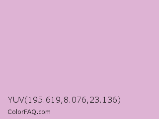 YUV 195.619,8.076,23.136 Color is a light magenta color and the nearest color is Pink Lavender #d8b2d1. Hex code #deb3d4 and RGB value is rgb(222,179,212). In RGB color space, this color is composed of 87% red, 70% green, 83% blue, In CMYK color space, this color is composed of 0% cyan, 19% magenta, 5% yellow , 13% black , In HSL color space, this color has a hue angle of 314° , 39% saturation and 79% lightness.