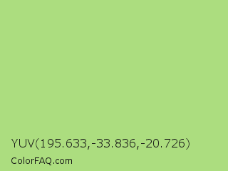 YUV 195.633,-33.836,-20.726 Color is a light green color and the nearest color is Feijoa #9fdd8c. Hex code #acdd7f and RGB value is rgb(172,221,127). In RGB color space, this color is composed of 67% red, 87% green, 50% blue, In CMYK color space, this color is composed of 22% cyan, 0% magenta, 43% yellow , 13% black , In HSL color space, this color has a hue angle of 91° , 58% saturation and 68% lightness.