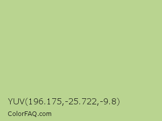 YUV 196.175,-25.722,-9.8 Color is a light green color and the nearest color is Pine Glade #c7cd90. Hex code #b9d490 and RGB value is rgb(185,212,144). In RGB color space, this color is composed of 73% red, 83% green, 56% blue, In CMYK color space, this color is composed of 13% cyan, 0% magenta, 32% yellow , 17% black , In HSL color space, this color has a hue angle of 84° , 44% saturation and 70% lightness.