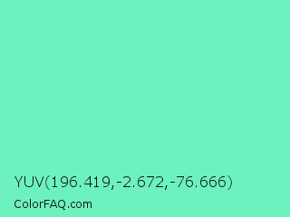 YUV 196.419,-2.672,-76.666 Color is a light green color and the nearest color is Medium Aquamarine #66ddaa. Hex code #6df2bf and RGB value is rgb(109,242,191). In RGB color space, this color is composed of 43% red, 95% green, 75% blue, In CMYK color space, this color is composed of 55% cyan, 0% magenta, 21% yellow , 5% black , In HSL color space, this color has a hue angle of 157° , 84% saturation and 69% lightness.