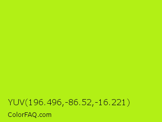 YUV 196.496,-86.52,-16.221 Color is a normal lime color and the nearest color is Inch Worm #b0e313. Hex code #b2f015 and RGB value is rgb(178,240,21). In RGB color space, this color is composed of 70% red, 94% green, 8% blue, In CMYK color space, this color is composed of 26% cyan, 0% magenta, 91% yellow , 6% black , In HSL color space, this color has a hue angle of 77° , 88% saturation and 51% lightness.