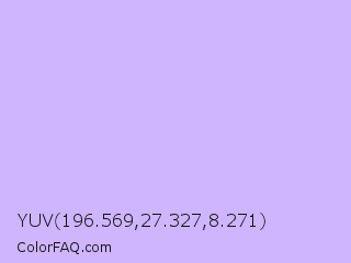 YUV 196.569,27.327,8.271 Color is a very light violet color and the nearest color is Perfume #d0bef8. Hex code #ceb5fc and RGB value is rgb(206,181,252). In RGB color space, this color is composed of 81% red, 71% green, 99% blue, In CMYK color space, this color is composed of 18% cyan, 28% magenta, 0% yellow , 1% black , In HSL color space, this color has a hue angle of 261° , 92% saturation and 85% lightness.